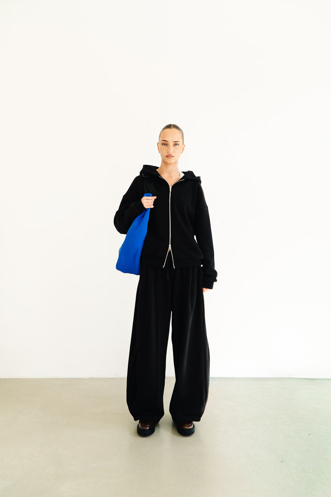 A bold foundation for winter fits. The Wide Sweat Pants are cut oversized with an easy drape and clean hem—no cuffs, no fuss. Built from structured, soft-brushed fleece for all-day comfort, they balance lounge ease with a tailored silhouette. FOR WORKING, FOR WEEKENDS, FOR TRAVEL.